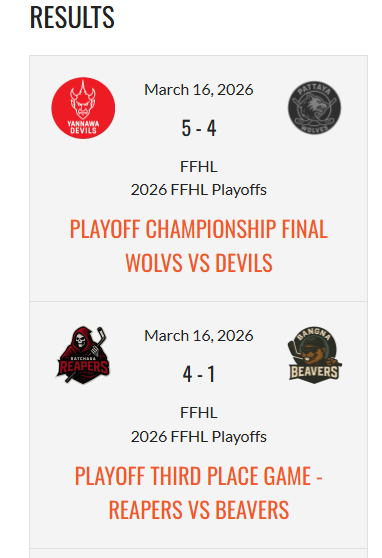 Congratulations again to the **Ratchada Reapers**, proudly sponsored by **Buddy’s Bar & Grill**, for finishing **top of the Flying Farangs Ice Hockey League** table! 💪👏